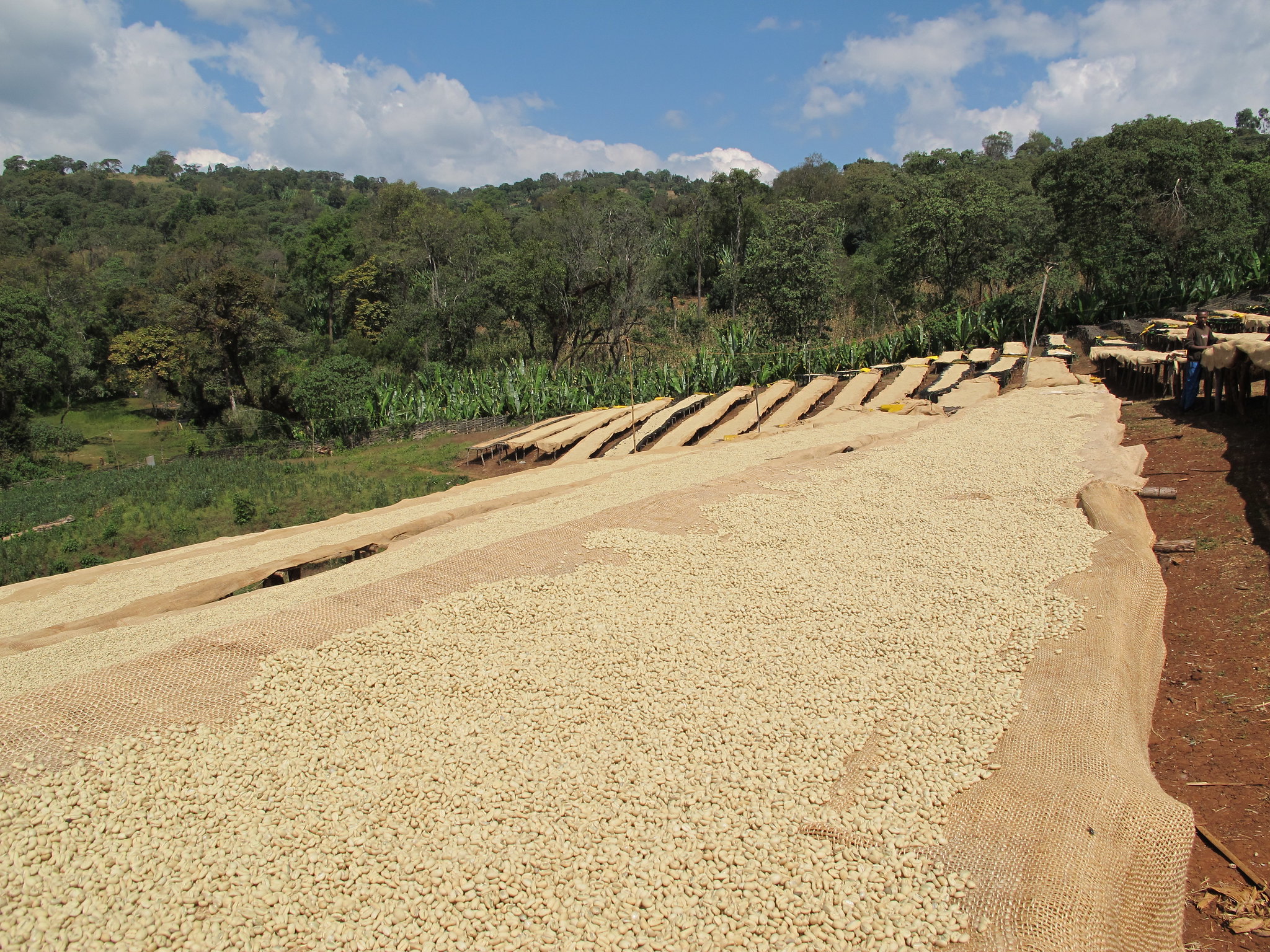 Next, the beans are extracted from the cherries within hours of being harvested and thoroughly washed to remove any remaining mucilage. After this, they are spread across raised African drying beds to dry in the sun for 12 to 15 days. The beans are routinely raked throughout the drying process to ensure consistent drying.